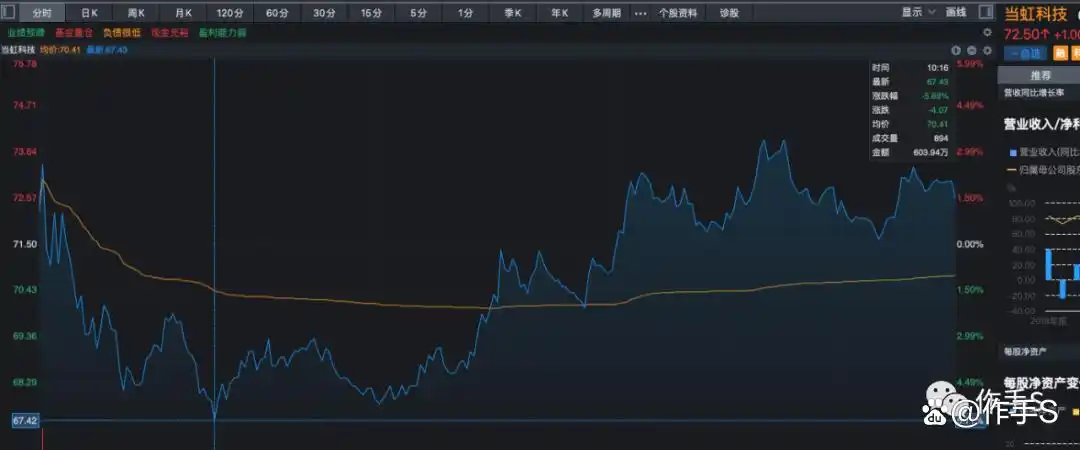 当虹今天的分时走低而后探底回升:(聪明资金低吸等明日兑现)